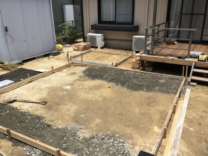 梅雨あけた?柳川市I様邸のタイルテラス進捗です。