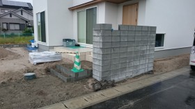 門回りもあっという間に積みあがりました。目隠しも兼ねているので、道路からは結構圧迫感ありますね。