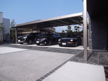・間口の広いクローズ外構は平面的にシンプルになりやすいので、前後に凹凸ができるようにデザインし、植栽を効果的に配植した。