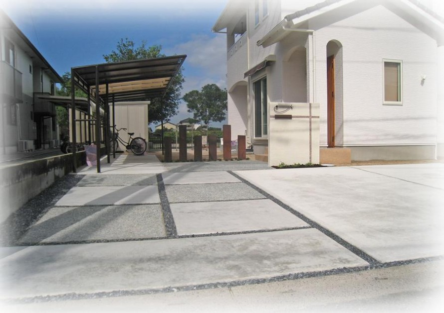 アプローチはリズムよく、コンクリート&洗い出し仕上げを